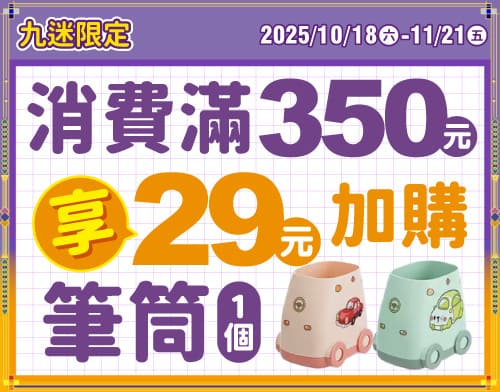 促銷活動2025.10.09 286期【九迷限定】滿350元,享29元加購來店禮