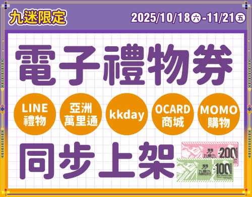 促銷活動2025.10.09 286期【電子禮物劵】九乘九電子禮物券上架囉!!