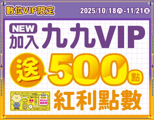 促銷活動2025.10.09 286期【數位VIP限定】新加入就送紅利點數500點