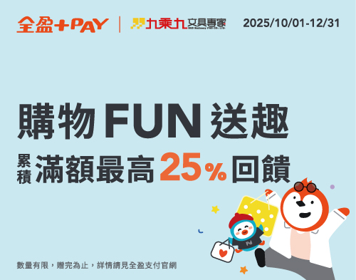 促銷活動2025.10.01 【全盈+ PAY】持全盈+PAY至九乘九消費 最高享25%回饋