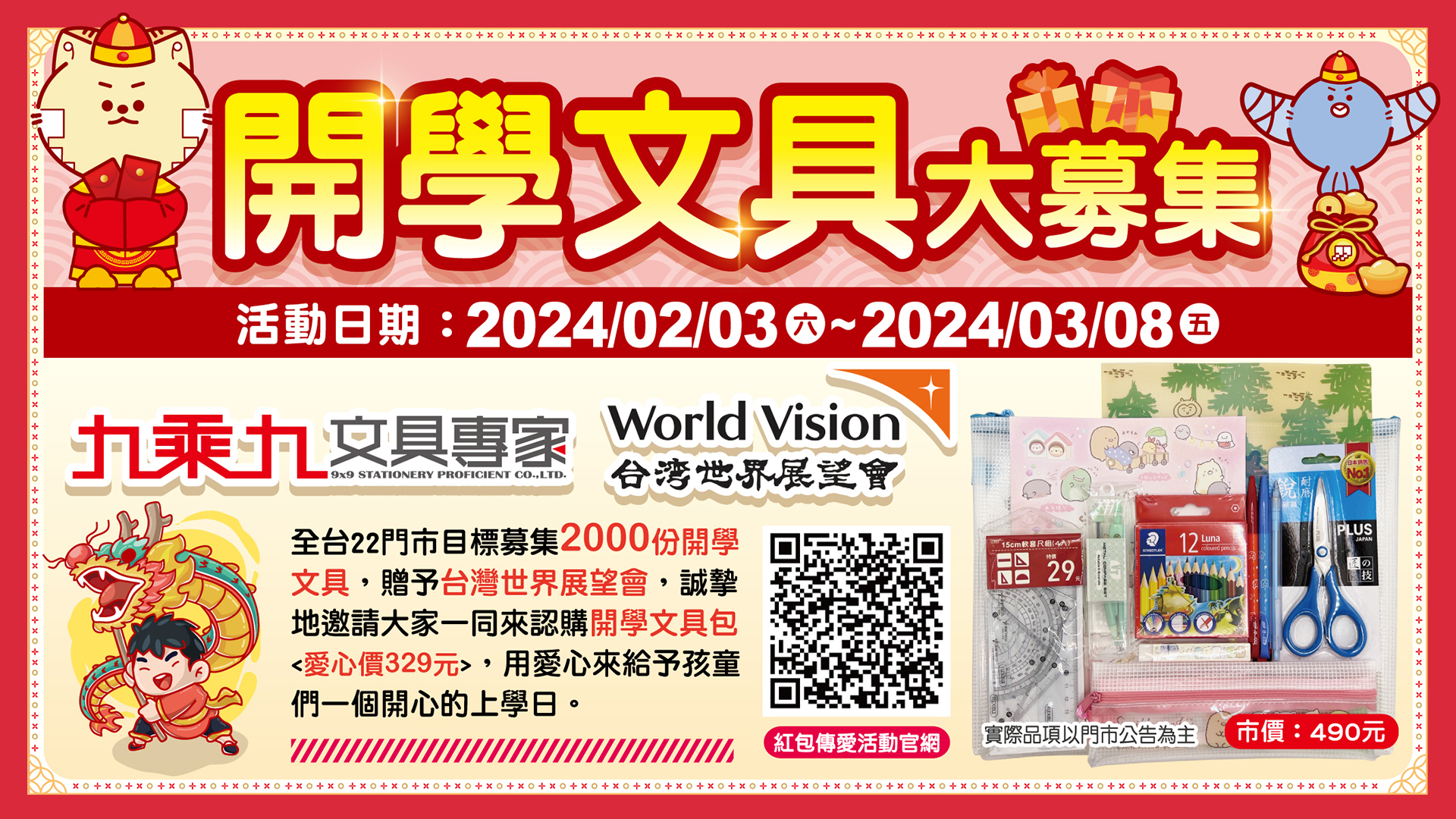 【樂公益】九乘九x世界展望會 開學文具大募集